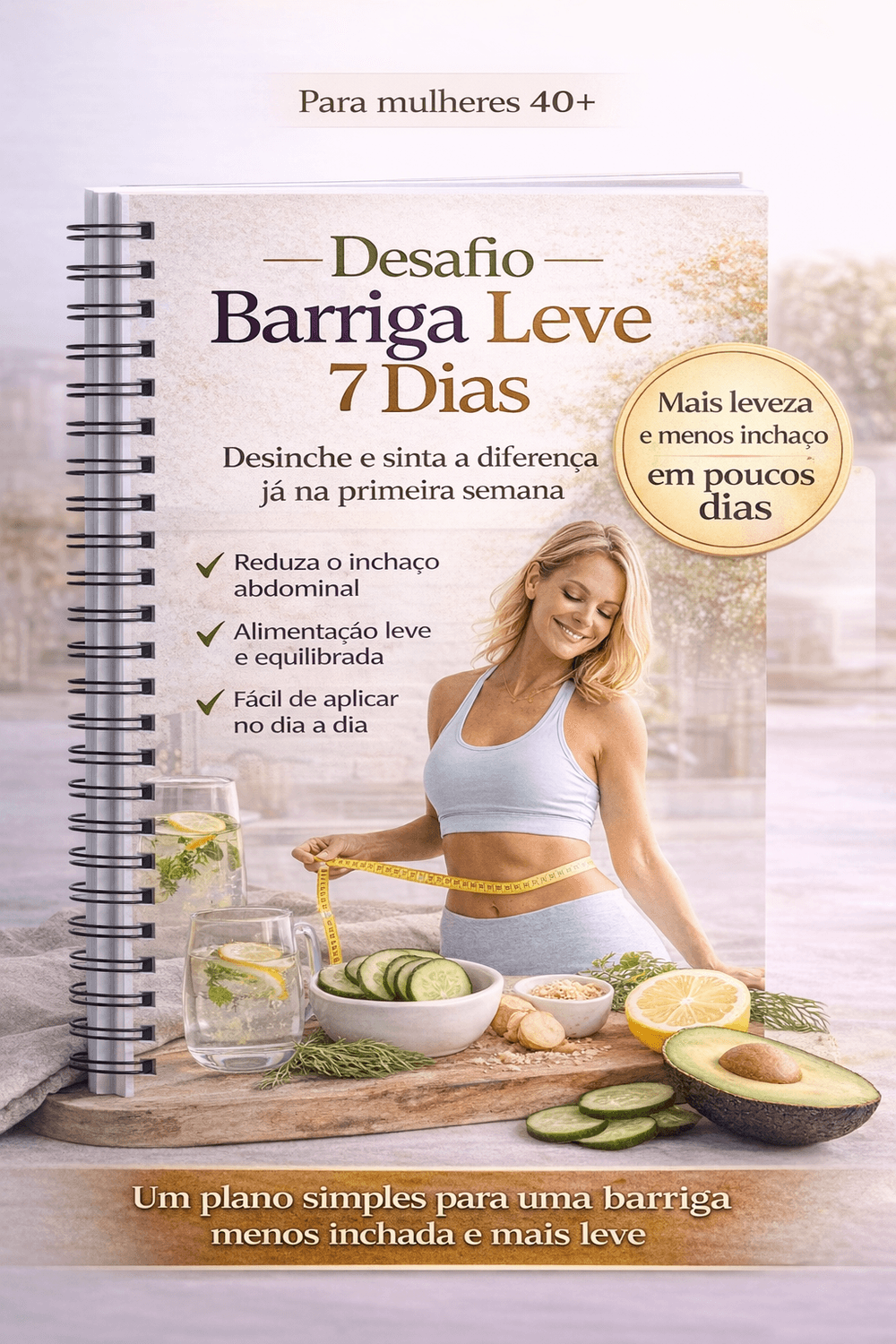 Um plano simples e natural para mulheres 40+ reduzirem o inchaço abdominal e recuperarem o conforto no próprio corpo.